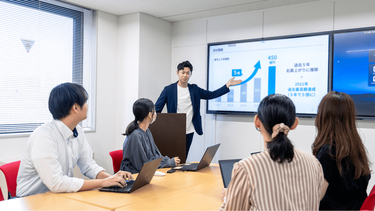 入社後は、単にサービスを売るだけではなく、クライアントごとの営業に関する課題をヒアリングし、最適な解決策を提案していただきます。
